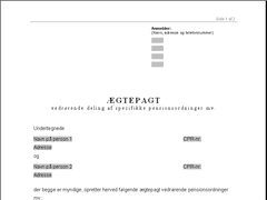 Ægtepagt vedrørende pensionsordninger (deling af specifikke pensionsordninger) med engelsk oversættelse