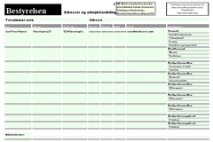 Arbejdsfordelingen i en foreningsbestyrelse fastlægges normalt på det første bestyrelsesmøde. Blanketten dokumenterer den vedtagne fordeling af poster og arbejdsopgaver og kan anvendes internt samt til distribution til medlemmer, samarbejdspartnere mv.