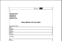 Den pågældende arving erklærer på denne blanket under strafansvar, at vedkommende ikke er under konkurs, gældssanering eller tvangsakkord, ikke inden for det seneste år har afgivet erklæring om insolvens for fogedretten, og at vedkommende i øvrigt er i stand til at opfylde sine forpligtelser efterhånden som de forfalder. Erklæringen udfyldes og indsendes til skifteretten.