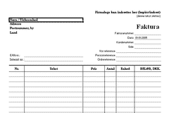 Dokumentet er på 2 A4-sider i Excel 2000/2003-format. De to sider er hhv. faktura og faktura-kopi. Dokumentet fungerer som blanket med udfyldefelter.