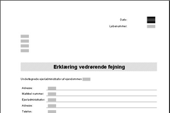 Dokumentet er på 1 A-4 side i Word 2000/2003-format. Dokumentet er aflåst og fungerer som blanket med udfyldefelter.