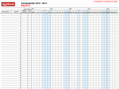 Feriekalender for ferieåret 2012/2013 med plads til op til 100 medarbejdere.