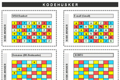Kodehusker (pinkoder, passwords, e-mail mv.)