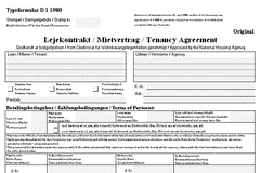 Lejekontrakt autoriseret af Boligstyrelsen som typeformular D 1 1980 til anvendelse i lejemål om ferieboliger af en tidsbestemt varighed på ikke over 4 måneder.