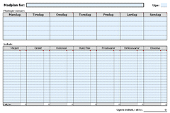 Madplanen giver overblik over ugens menu og indkøb af madvarer, viktualier mv. Den er et rigtigt godt redskab, hvis man vil undgå impulsindkøb og styre sin økonomi.