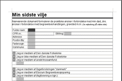 Det anbefales, at dokumentet udfyldes, udskrives og underskrives i mindst to eksemplarer. Du opbevarer selv det ene eksemplar. Da det er vigtigt, at de pårørende er bekendt med ønskerne i dokumentet anbefales det, at en genpart af dokumentet afleveres til et familiemedlem, såvel som til bedemanden.