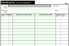 Blanket til beregning af skattefri rejsegodtgørelse for medarbejderens rejser.