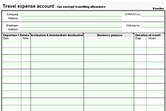 Engelsksproget blanket til beregning af skattefri rejsegodtgørelse for medarbejderens rejser.