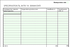 Specifikation til aktiv 14 og 15 i åbningsstatus - bankkonti og præmieobligationer (SK14D). Bilag til åbningsstatus (SK14)