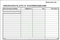 Specifikation til aktiv 19 og 22 i åbningsstatus - investeringsbeviser (SK14H/I). Bilag til åbningsstatus (SK14)