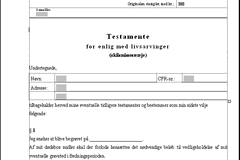 Testamenter skal underskrives for notar i 2 eksemplarer. Testamenter skal altid indleveres i genpart med forside som Genpart af testamente til tinglysningskontoret. Denne forside er anvendt i nærværende formular.