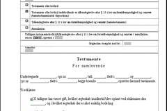 Testamenter skal underskrives for notar i 2 eksemplarer. Testamenter skal altid indleveres i genpart med forside som Genpart af testamente til tinglysningskontoret. Denne forside er anvendt i nærværende formular.