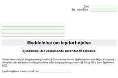 Varsel, lejeforhøjelse for ejendomme kun med beboelse (pga. vedligeholdelse)