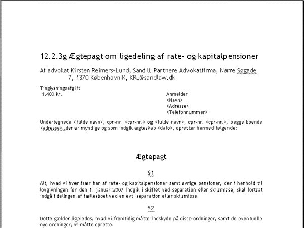 Ægtepagt vedrørende pensionsordninger (uden tjenestemandspensioner mv.)
