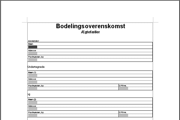 Dokumentet er i på 1 A4-side i Word 2000/2003-format. Det fungerer som blanket med adgang til at inddatere i blankettens udfyldefelter.