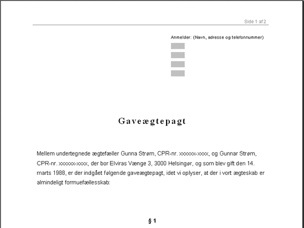 Dokumentet er på 2 A4-sider i Word 2000/2003-format. Dokumentet er en juridisk formular og kan frit redigeres.